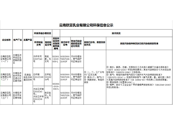 云南歐亞乳業有限公司(二廠)信息公開